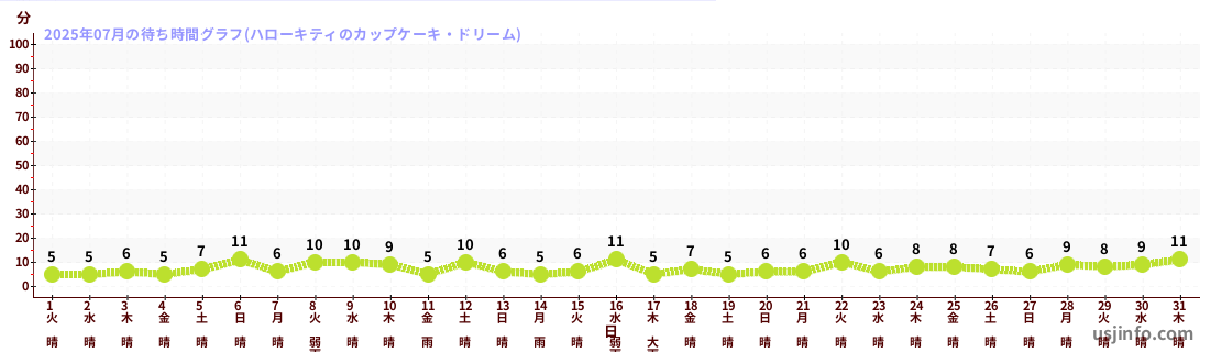 • ハローキティのカップケーキ・ドリーム$B$N(B2025年07月01日のの一日平均待ち時間