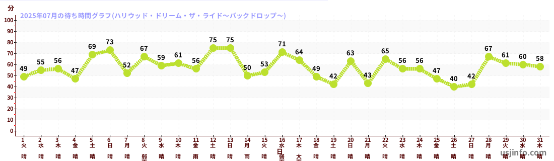 • ハリウッド・ドリーム・ザ・ライド〜バックドロップ〜$B$N(B2025年07月01日のの一日平均待ち時間