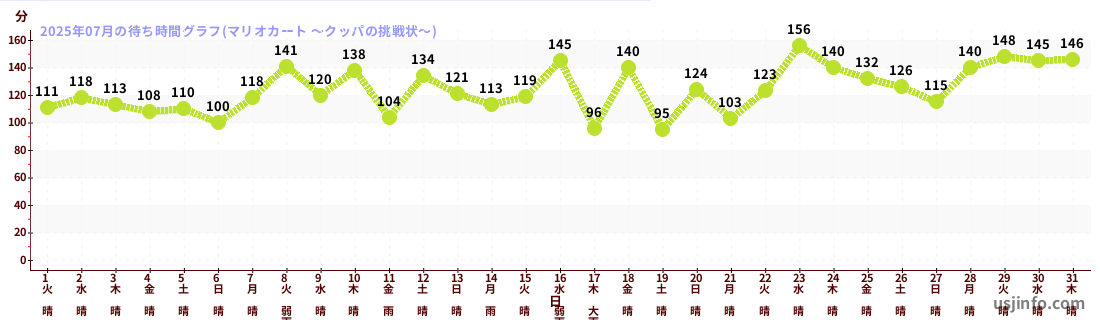 • マリオカート ~クッパの挑戦状~$B$N(B2025年07月01日のの一日平均待ち時間