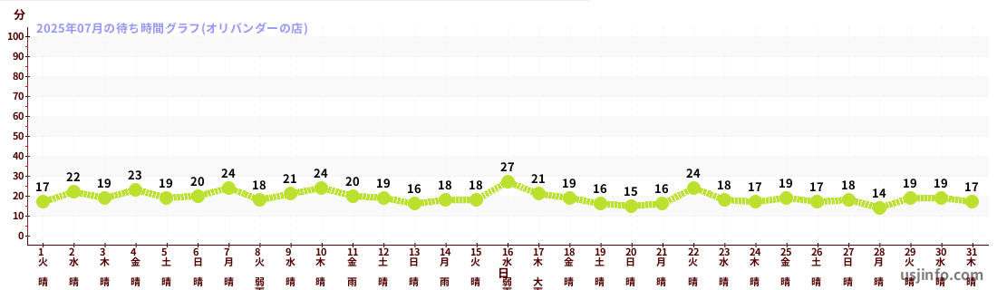 • オリバンダーの店$B$N(B2025年07月01日のの一日平均待ち時間