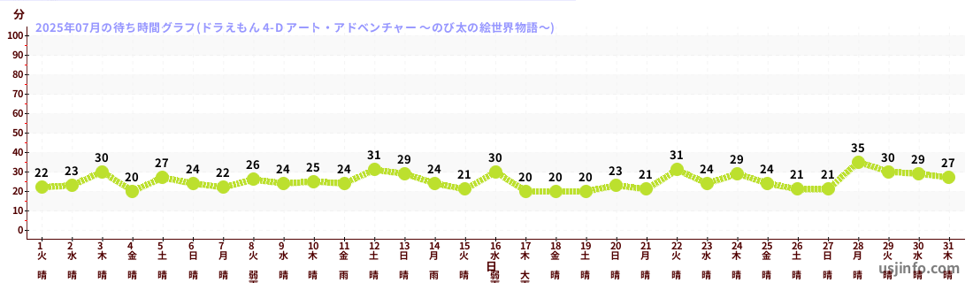 • ドラえもん 4-D アート・アドベンチャー ~のび太の絵世界物語~$B$N(B2025年07月01日のの一日平均待ち時間