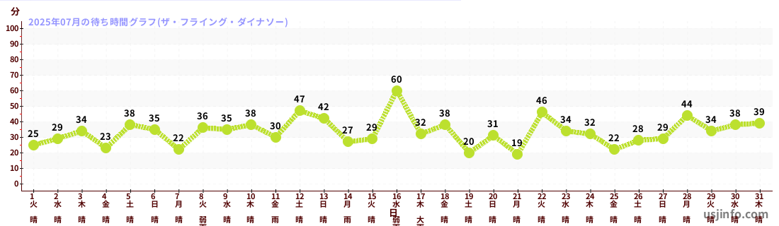 • ザ・フライング・ダイナソー$B$N(B2025年07月01日のの一日平均待ち時間