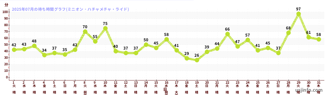 • ミニオン・ハチャメチャ・ライド$B$N(B2025年07月01日のの一日平均待ち時間