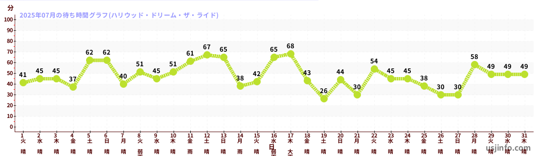 • ハリウッド・ドリーム・ザ・ライド$B$N(B2025年07月01日のの一日平均待ち時間
