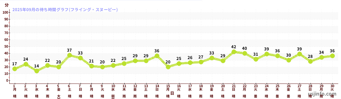 • フライング・スヌーピー$B$N(B2025年09月01日のの一日平均待ち時間