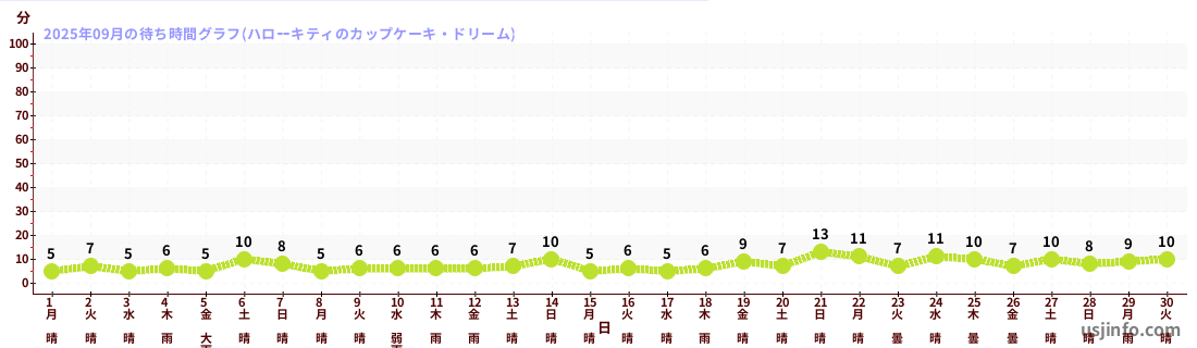 • ハローキティのカップケーキ・ドリーム$B$N(B2025年09月01日のの一日平均待ち時間