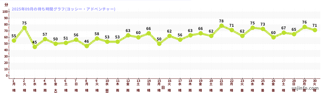• ヨッシー・アドベンチャー$B$N(B2025年09月01日のの一日平均待ち時間