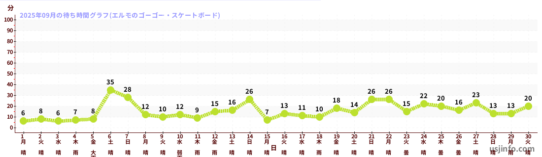 • エルモのゴーゴー・スケートボード$B$N(B2025年09月01日のの一日平均待ち時間
