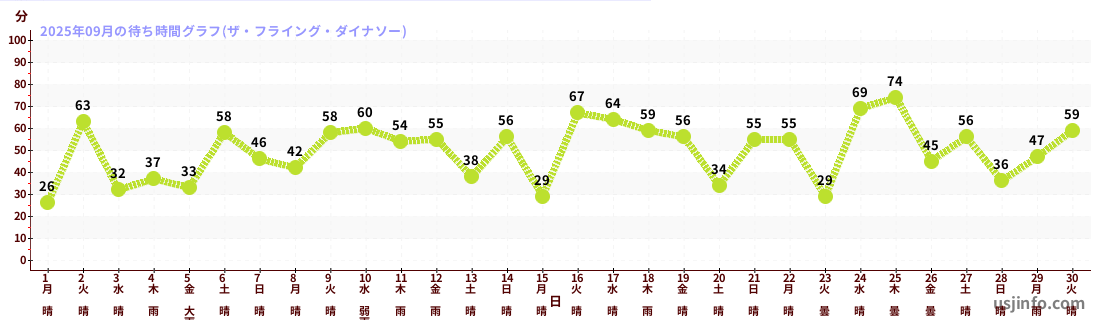 • ザ・フライング・ダイナソー$B$N(B2025年09月01日のの一日平均待ち時間