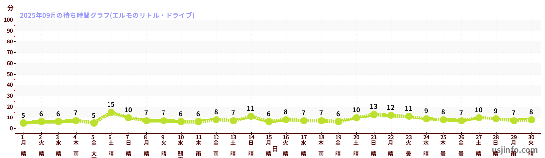 • エルモのリトル・ドライブ$B$N(B2025年09月01日のの一日平均待ち時間