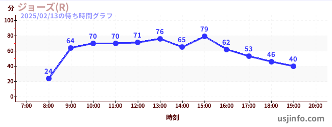 • ジョーズ(R)$B$N(B2025年02月13日の待ち時間