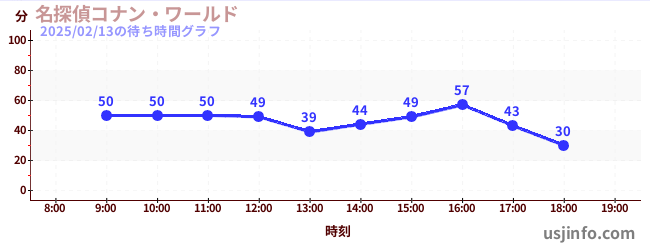 • 名探偵コナン・ワールド$B$N(B2025年02月13日の待ち時間