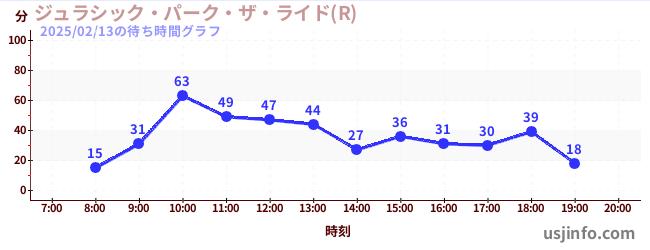 • ジュラシック・パーク・ザ・ライド(R)$B$N(B2025年02月13日の待ち時間