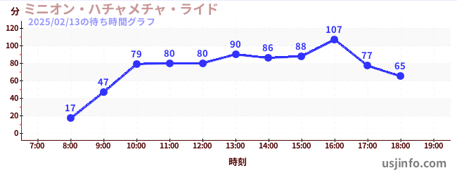 • ミニオン・ハチャメチャ・ライド$B$N(B2025年02月13日の待ち時間