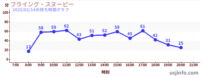 • フライング・スヌーピー$B$N(B2025年02月14日の待ち時間
