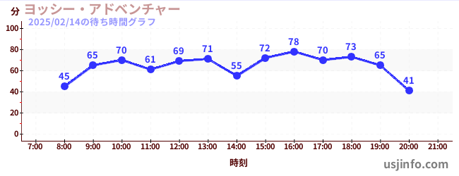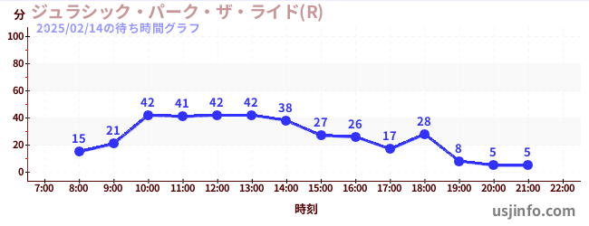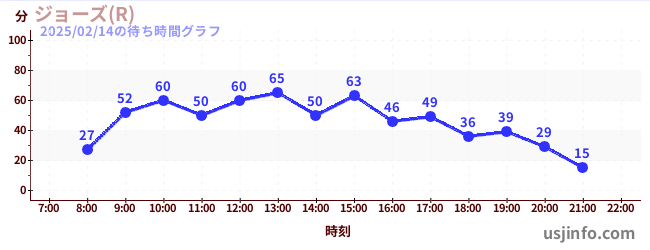 • ジョーズ(R)$B$N(B2025年02月14日の待ち時間
