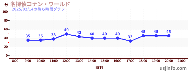 • 名探偵コナン・ワールド$B$N(B2025年02月14日の待ち時間