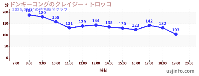 • ドンキーコングのクレイジー・トロッコ$B$N(B2025年02月14日の待ち時間