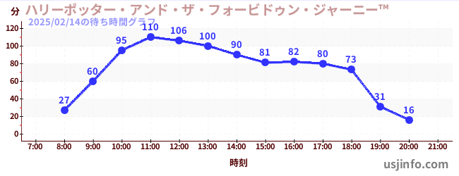 • ハリーポッター・アンド・ザ・フォービドゥン・ジャーニー™$B$N(B2025年02月14日の待ち時間