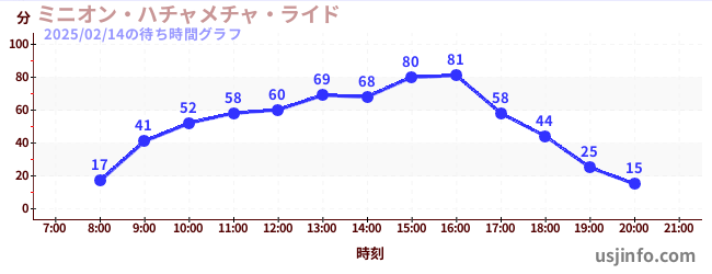 • ミニオン・ハチャメチャ・ライド$B$N(B2025年02月14日の待ち時間