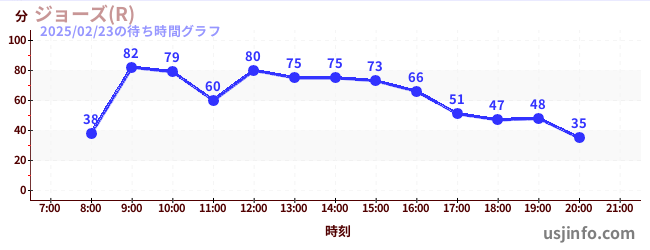 • ジョーズ(R)$B$N(B2025年02月23日の待ち時間