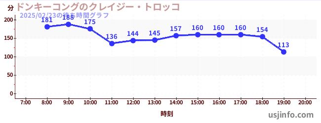 • ドンキーコングのクレイジー・トロッコ$B$N(B2025年02月23日の待ち時間