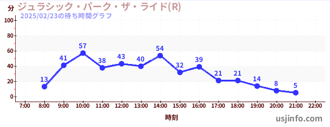 • ジュラシック・パーク・ザ・ライド(R)$B$N(B2025年02月23日の待ち時間