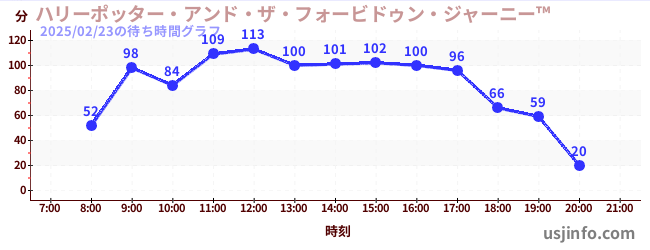 • ハリーポッター・アンド・ザ・フォービドゥン・ジャーニー™$B$N(B2025年02月23日の待ち時間