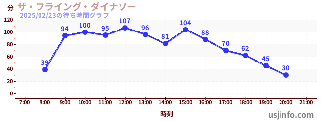 • ザ・フライング・ダイナソー$B$N(B2025年02月23日の待ち時間