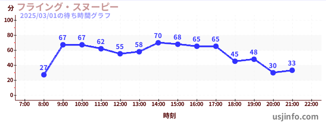 • フライング・スヌーピー$B$N(B2025年03月01日の待ち時間