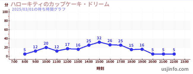 • ハローキティのカップケーキ・ドリーム$B$N(B2025年03月01日の待ち時間
