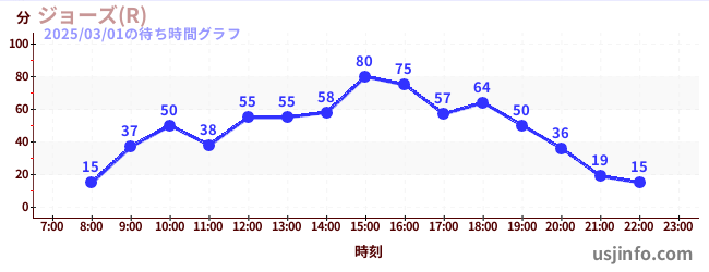 • ジョーズ(R)$B$N(B2025年03月01日の待ち時間