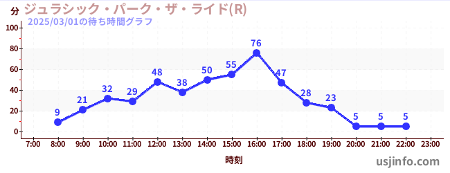 • ジュラシック・パーク・ザ・ライド(R)$B$N(B2025年03月01日の待ち時間