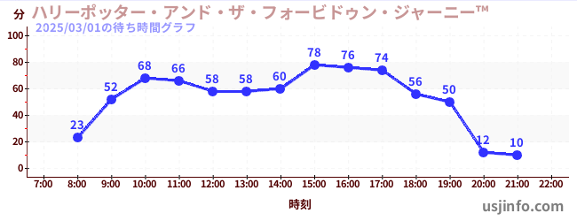 • ハリーポッター・アンド・ザ・フォービドゥン・ジャーニー™$B$N(B2025年03月01日の待ち時間