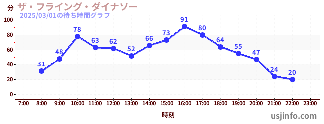 • ザ・フライング・ダイナソー$B$N(B2025年03月01日の待ち時間