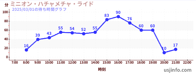 • ミニオン・ハチャメチャ・ライド$B$N(B2025年03月01日の待ち時間
