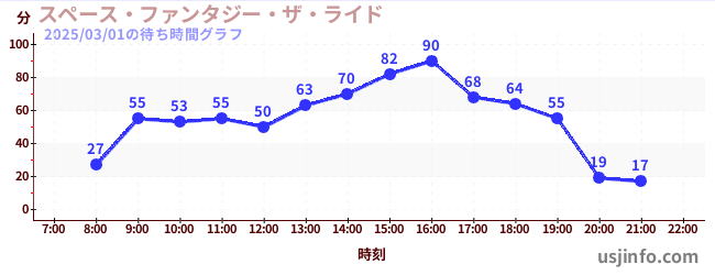 • スペース・ファンタジー・ザ・ライド$B$N(B2025年03月01日の待ち時間