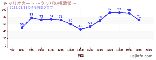 • マリオカート ~クッパの挑戦状~$B$N(B2025年03月11日の待ち時間