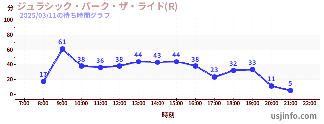 • ジュラシック・パーク・ザ・ライド(R)$B$N(B2025年03月11日の待ち時間