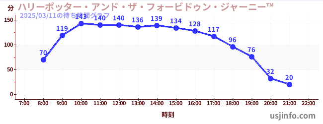 • ハリーポッター・アンド・ザ・フォービドゥン・ジャーニー™$B$N(B2025年03月11日の待ち時間