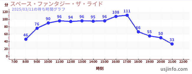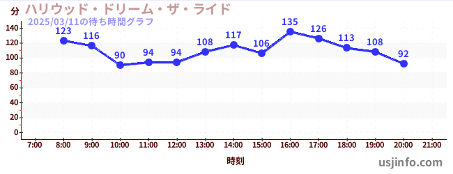 • ハリウッド・ドリーム・ザ・ライド$B$N(B2025年03月11日の待ち時間