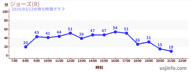 • ジョーズ(R)$B$N(B2025年03月12日の待ち時間