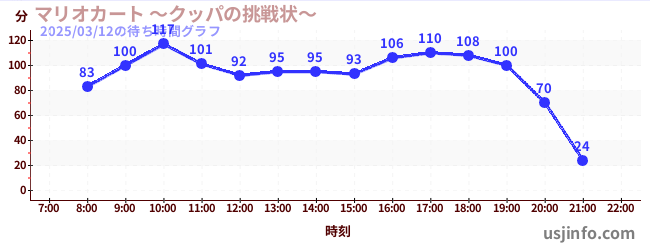 • マリオカート ~クッパの挑戦状~$B$N(B2025年03月12日の待ち時間