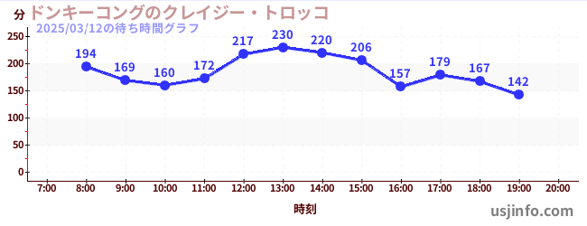 • ドンキーコングのクレイジー・トロッコ$B$N(B2025年03月12日の待ち時間