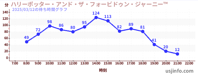 • ハリーポッター・アンド・ザ・フォービドゥン・ジャーニー™$B$N(B2025年03月12日の待ち時間