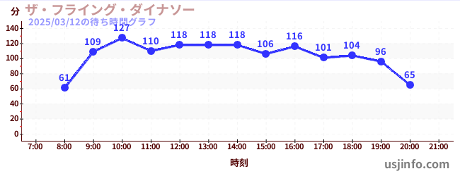 • ザ・フライング・ダイナソー$B$N(B2025年03月12日の待ち時間
