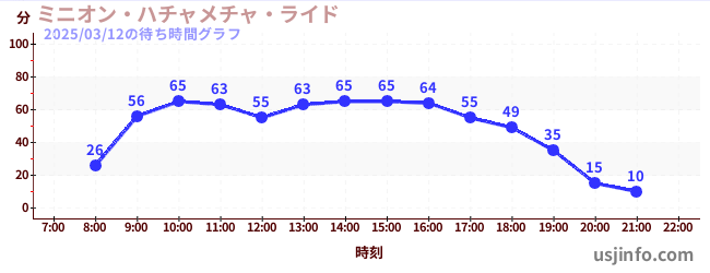• ミニオン・ハチャメチャ・ライド$B$N(B2025年03月12日の待ち時間