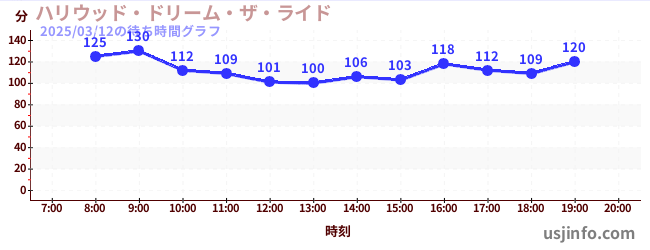 • ハリウッド・ドリーム・ザ・ライド$B$N(B2025年03月12日の待ち時間