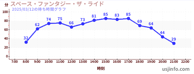 • スペース・ファンタジー・ザ・ライド$B$N(B2025年03月12日の待ち時間