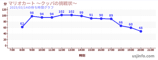 • マリオカート ~クッパの挑戦状~$B$N(B2025年03月14日の待ち時間